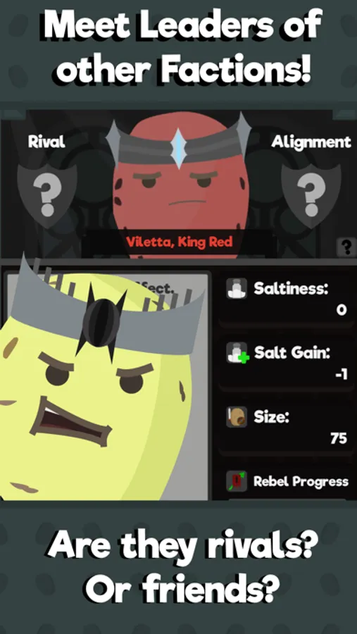You must apeel to your potato population, and squash any taterous rebellions! As you expand your empire, many factions will become salty, jealous of your rightful rule. They may become troublesome...