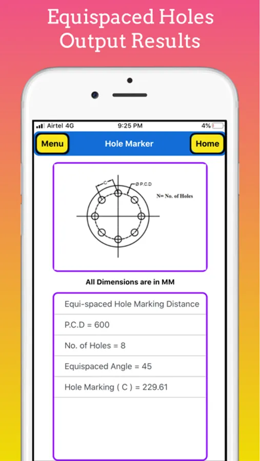 This app is very useful for those who are dealing with flange hole marking or bolt hole marking on flanges or any other application where we had to divide required no of parts on pitch circle diameter.