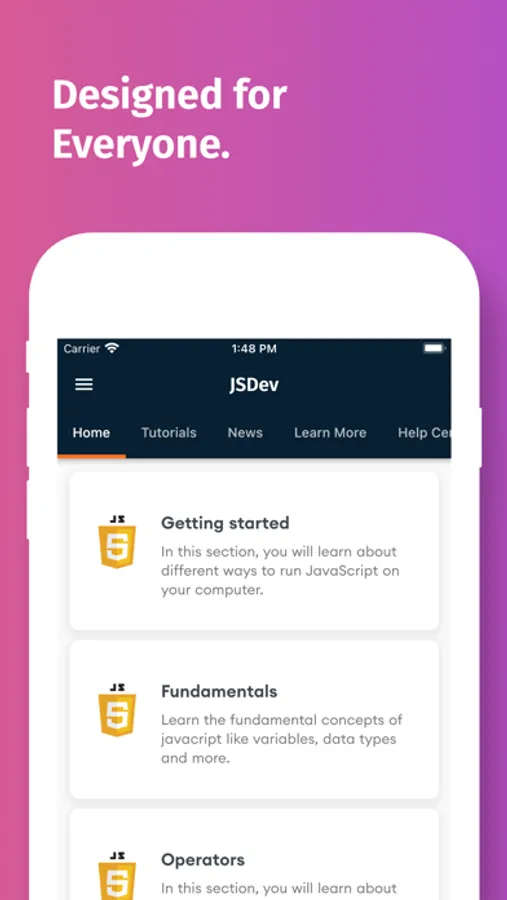 Learn JavaScript Programming and start your career. This app will give you all the basics to advanced knowledge you need to start developing your own web apps & websites with JavaScript. This is an in-depth guide to the most popular programming language JavaScript, after completing this JavaScript tutorial you will be able to develop your own cool web applications. This app contains all the aspects of JavaScript Programming with Excellent Projects and Javascript Tutorials.