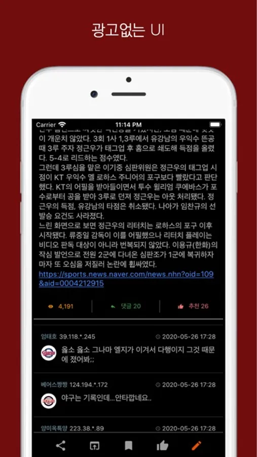 엠엘비파크을 편리하게 볼 수 있도록 디자인하였고, 웹에서 제공되는 상세한 기능이 모두 앱으로 구현되어있지는 않습니다.