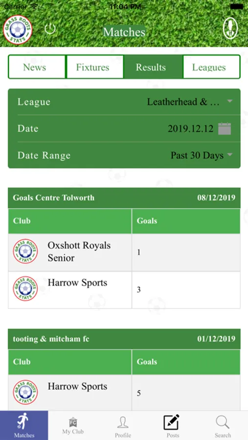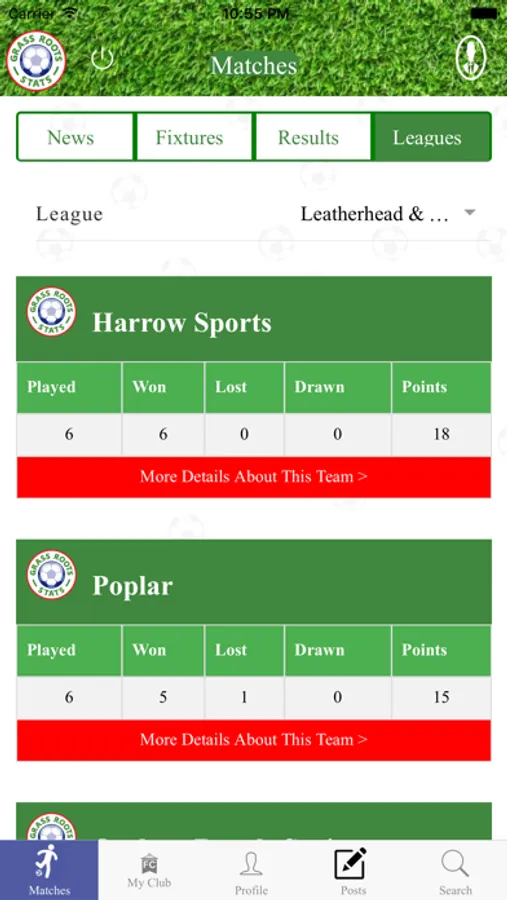 We currently have Leatherhead & District Sunday League football added to Grassroots Stats. Please contact us if you would like your league and club added.