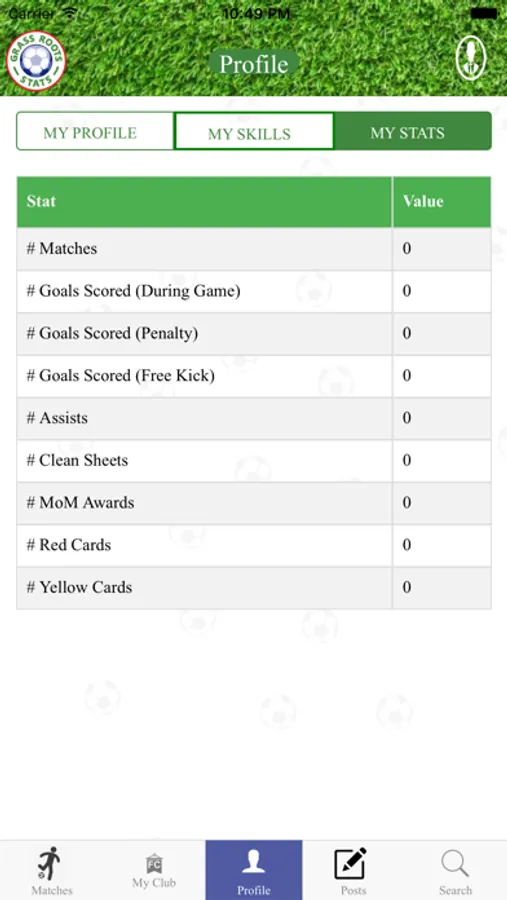 Players can keep track of there match stats throughout the season. Check your goalscoring runs or compare with your team mates.