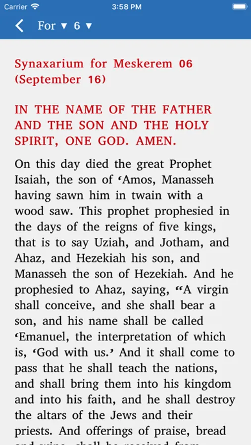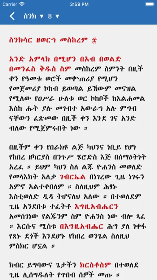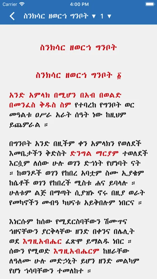 This app presents the lives of the saints of the Ethiopian church. The lives are arranged according to the Ethiopian calendar with the corresponding western Gregorian dates given in the titles.