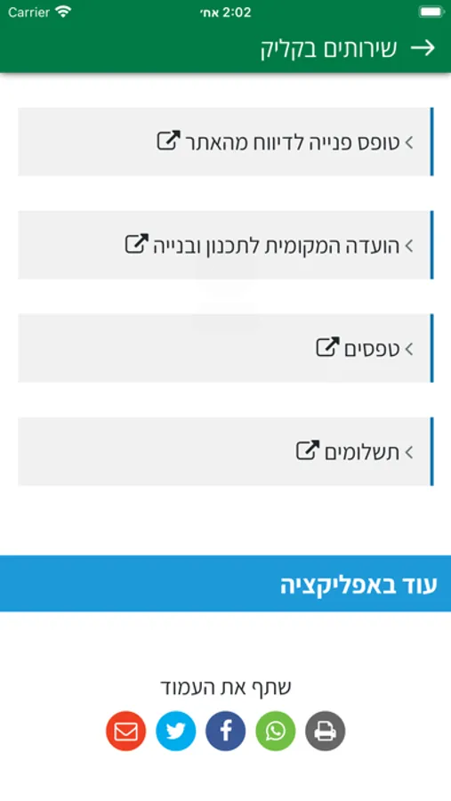 - קישורים מהירים לערוצים החברתיים של העירייה.