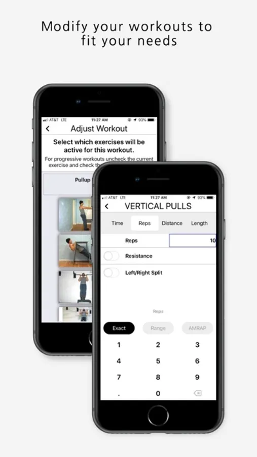 - Train your way. Adjust your workouts based on your specific needs. Add, remove, change exercises, sets, reps, time, and distance targets—and track reps, distance, and resistance.