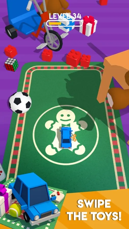 Swipe the toys and clear it's path to the gift box.