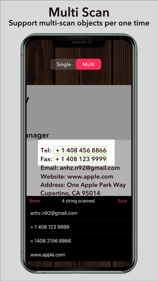 * Analyze and filter phone numbers, email or link from text recognized in live capture.
