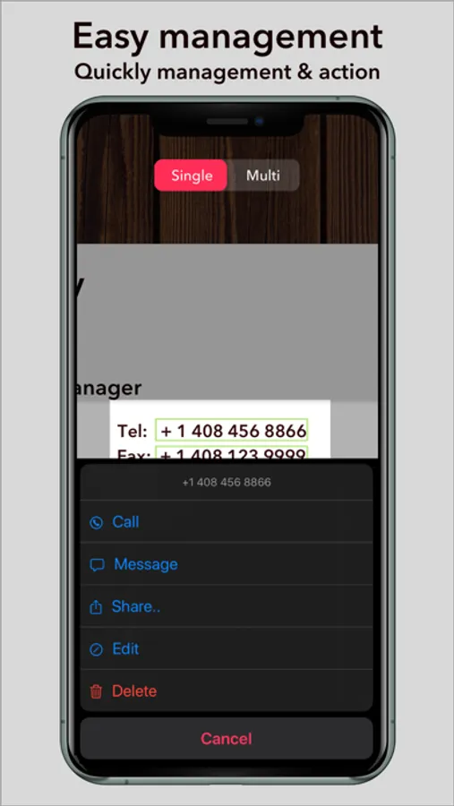 * Quickly call, message, email to scanned string easily.