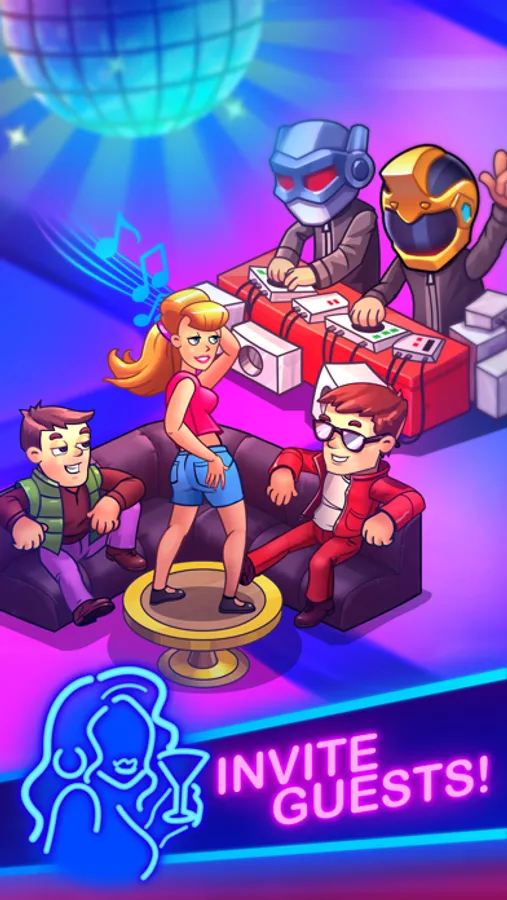 ② DEVELOP your nightclub, then you can invite more guests to totally burn the dance floor.