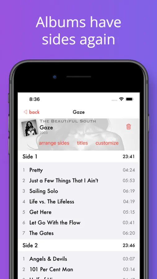 * Customize side arrangements when the app's guesses are off, or easily refer to Discogs for track position information and seamless side arrangement.