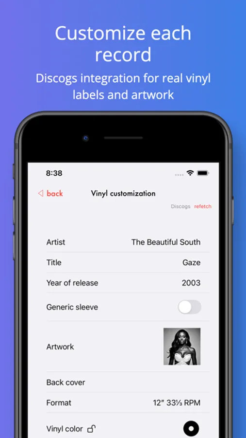 * Your virtual vinyl library syncs via iCloud, ensuring accessibility across multiple devices.