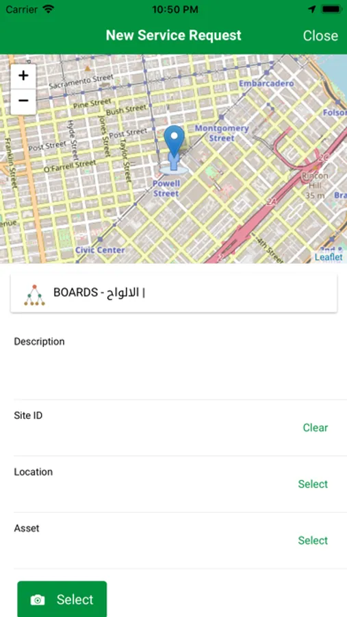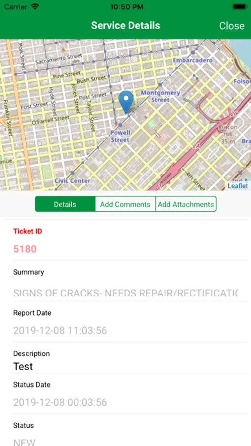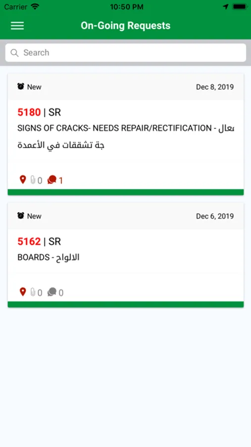 Users can type a description of the request, and enter a location for the request. They can also view the requests that they created that are currently unresolved so that they can follow up on those requests.