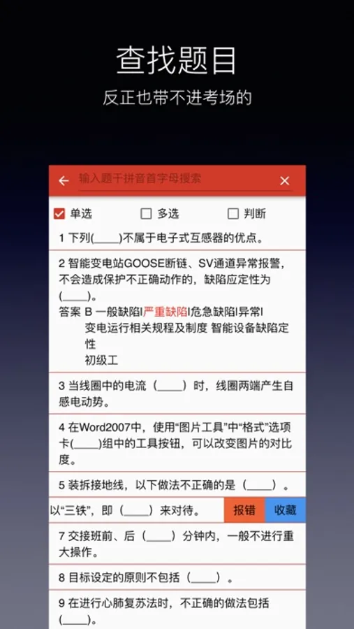 根据国网下发的职业技能鉴定考试题库制作的手机app。