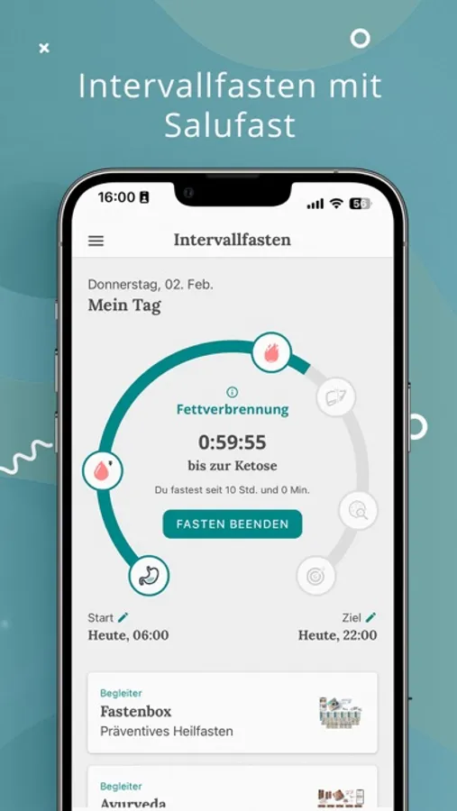Kombiniere Intervallfasten, Heilfasten und neueste Erkenntnisse aus der Naturheilkunde sowie der Chronobiologie in der Salufast App. Nutze die cleveren Funktionen für Deine persönlichen Ziele.
