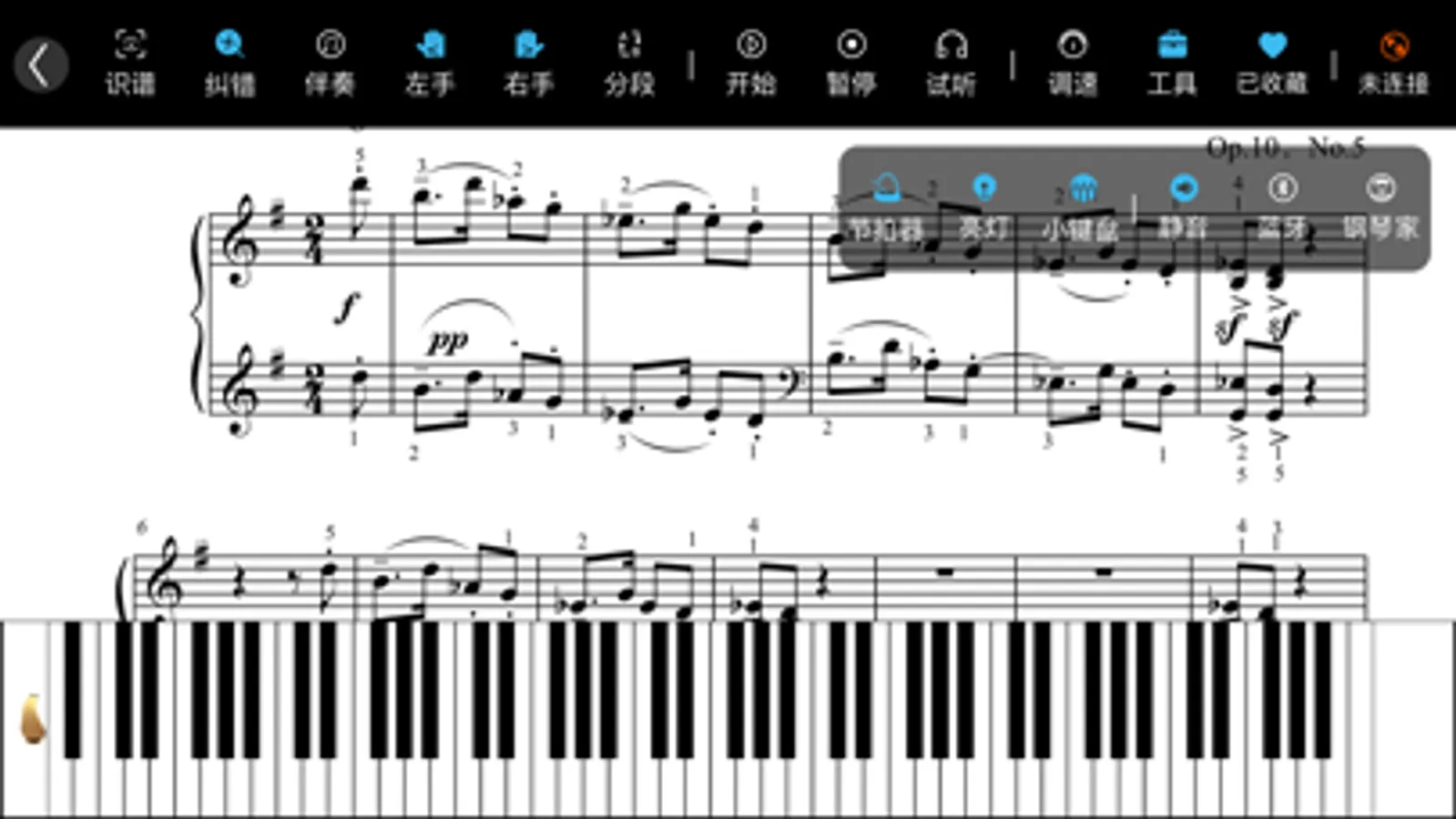 海量曲谱库实时更新,上万首智能曲谱,单双手随意切换,速度随心调节,按照自己的速度轻松演奏。