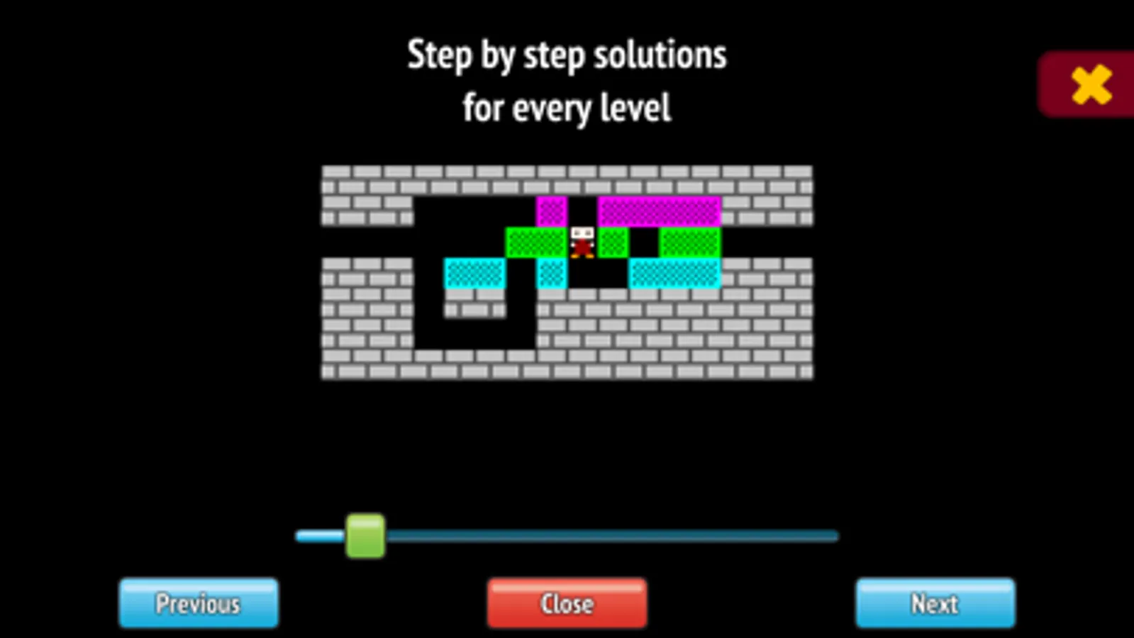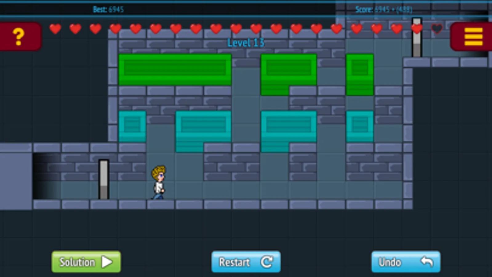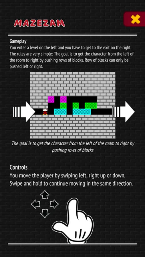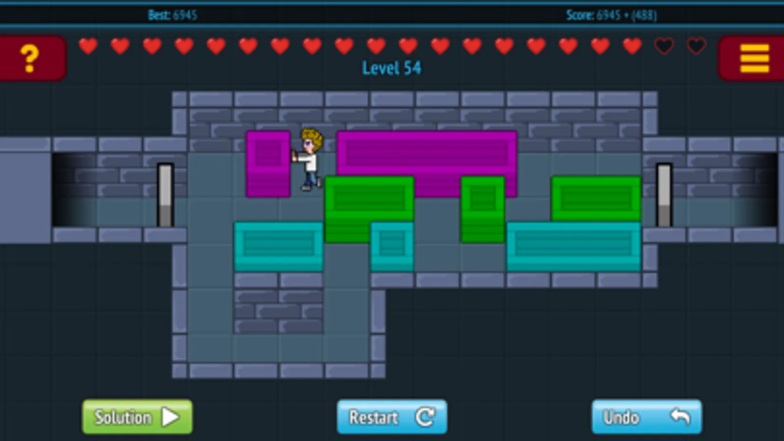 The rules are very simple: The goal is to get the character from the left of the room to right by pushing rows of blocks. Row of blocks can only be pushed left or right.