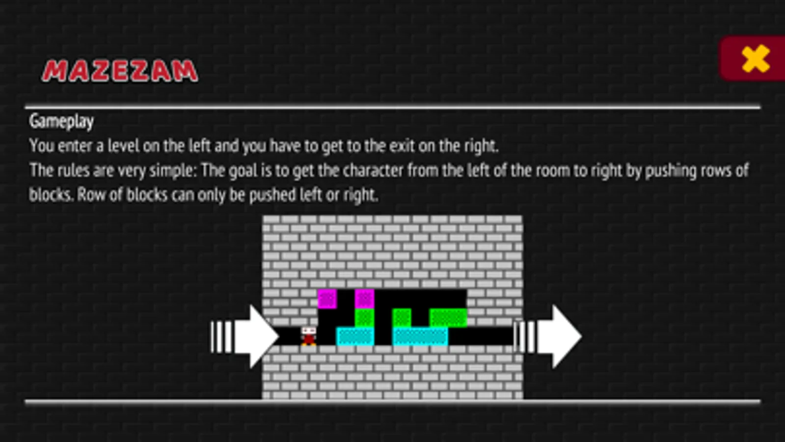 MazezaM is a puzzle game and a remake of the 2002 MazezaM originally created by Malcolm Tyrrell for the ZX Spectrum.