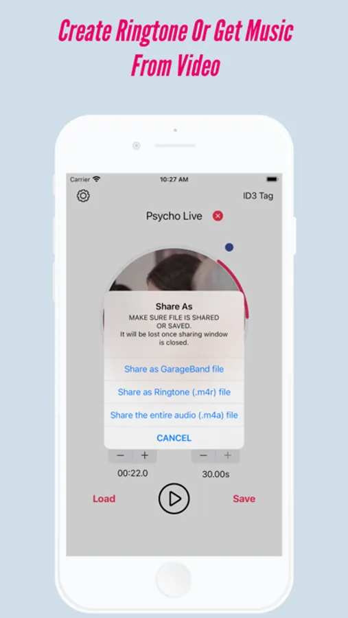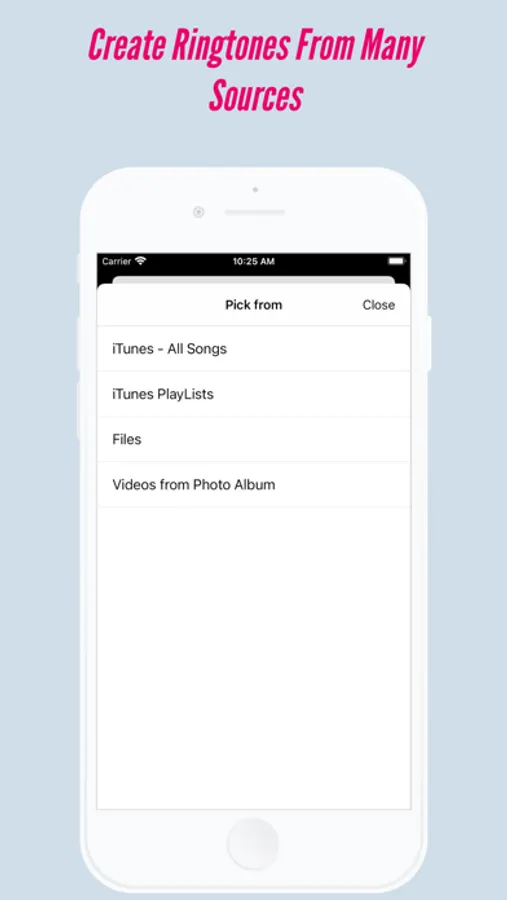 - Make ringtones from your iTunes library, audio or videos files.