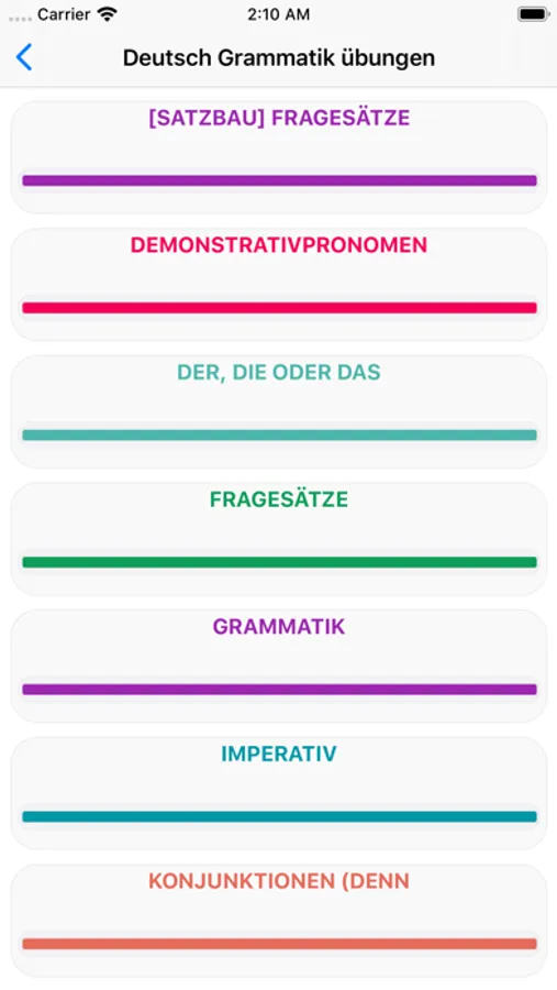 Below we have listed various German grammar exercises as well as the link to the placement tests. Just click on the level you are interested in and try it out: