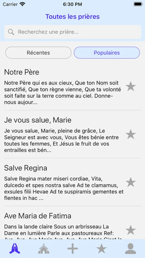Find your favorite prayers, or add them if they don't already exist. They will be saved in the application and can be read by other users as well.