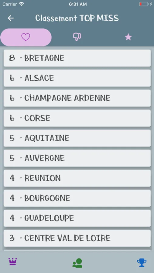 A tout moment, visualisez le classement des miss préférées de votre groupe.