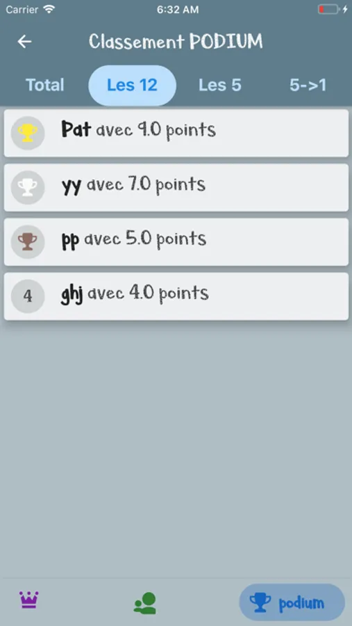 A la fin de la sélection des 12, gagnez un point par miss que vous avez trouvées faisant partie des 12.