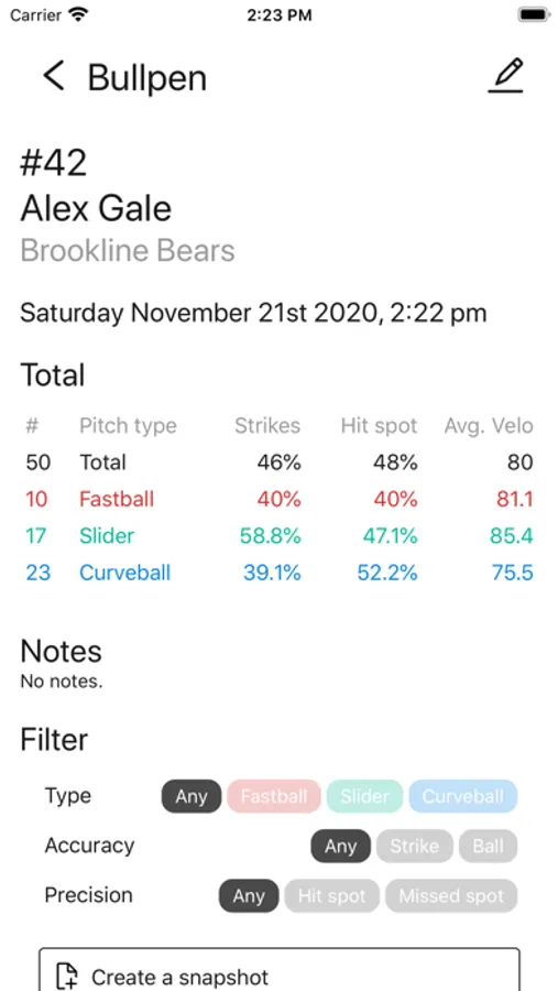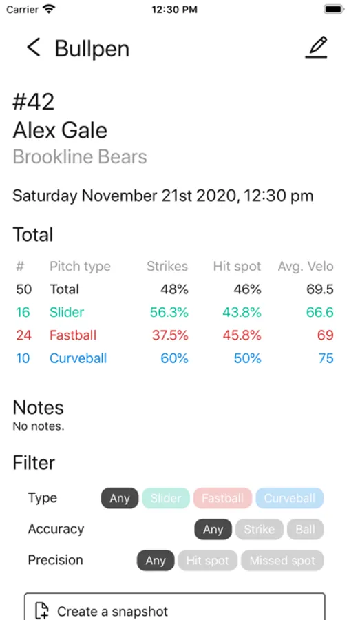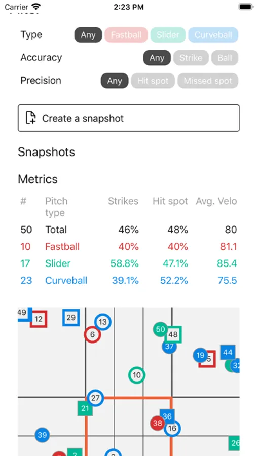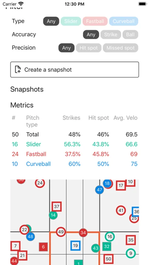 Strikelab was created for baseball and softball pitchers to track performance over time. Efficient tracking combined with detailed charts and advanced filters allows you to see the big picture alongside the finest details.