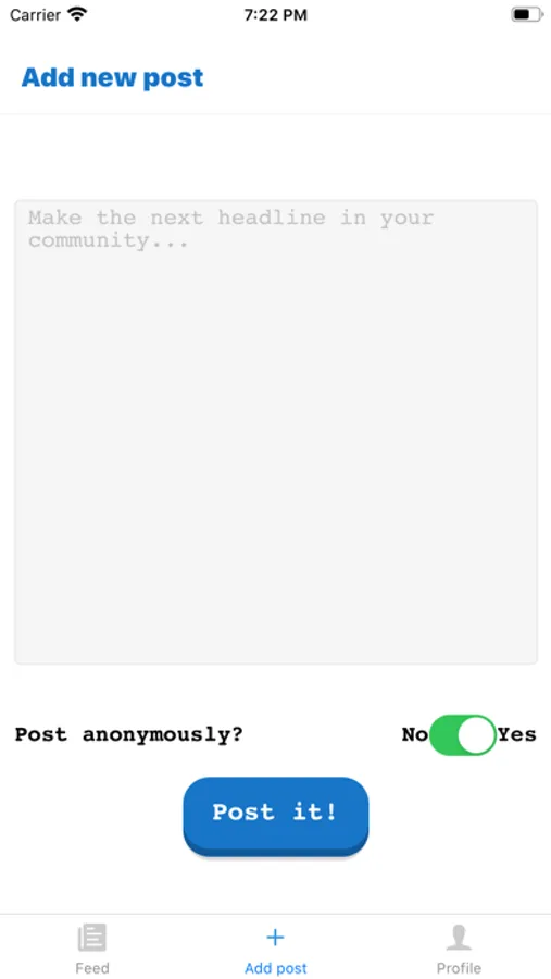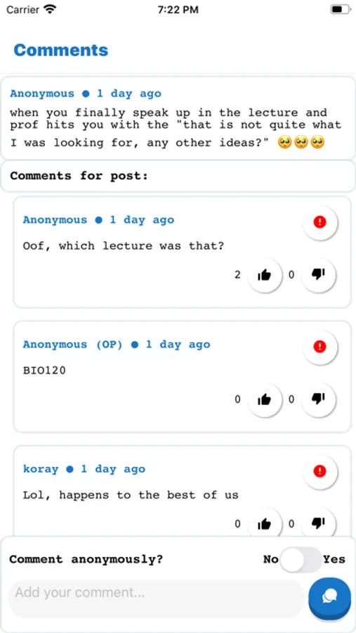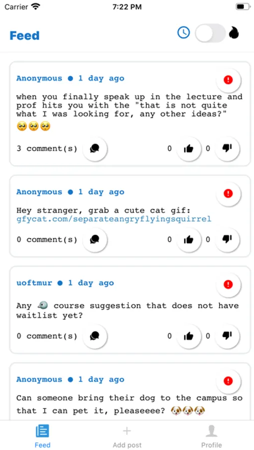 Share, comment and vote on posts from your university community anonymously. Have fun!