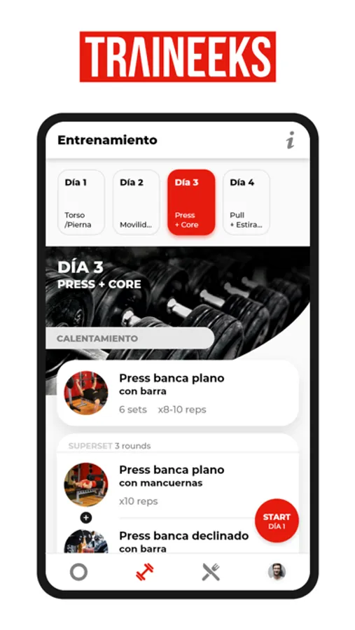 Ten siempre a mano tus rutinas de entrenamiento e información de cada ejercicio.