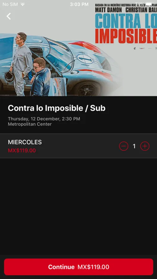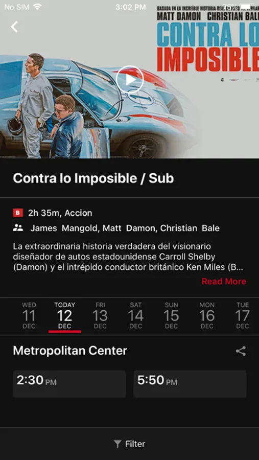 • Nuestras carteleras se actualizan de manera automática, para funciones posteriores solo eliges el día y horario del título.