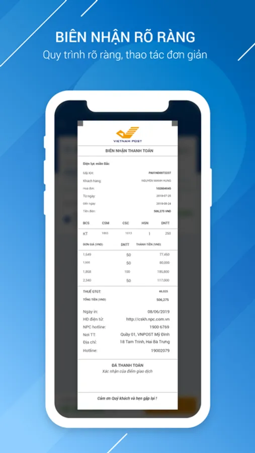 Ứng dụng dành cho các Thu ngân viên VnPost toàn quốc thu cước (Hoá đơn: Điện lực, Nước, Truyền hình, Internet...) trên Điện thoại thông minh SmartPhone, máy tính bảng.