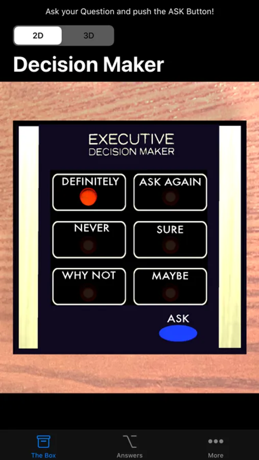 Ask your Question, push the button - and after the flashing light comes to a stop, take action.