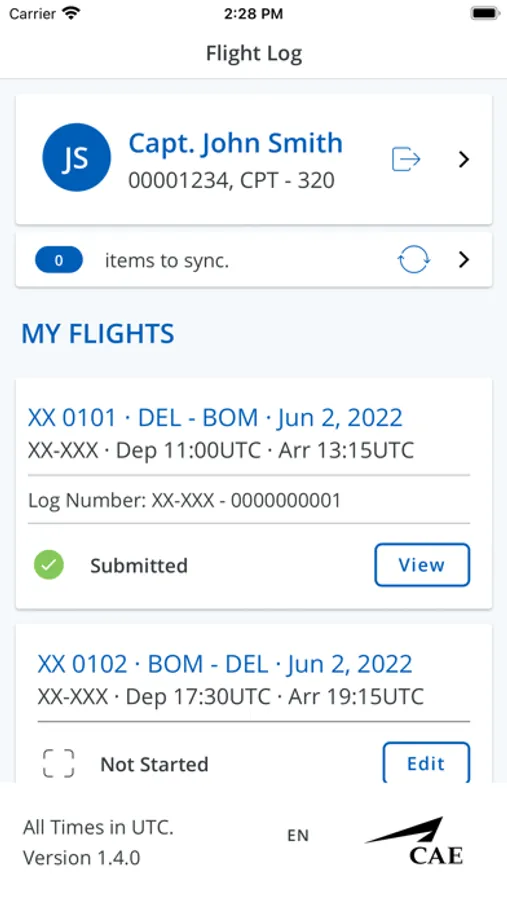 Offline mode is available to allow pilots to input data into logs while in the cockpit, for submission later once Internet access is available.