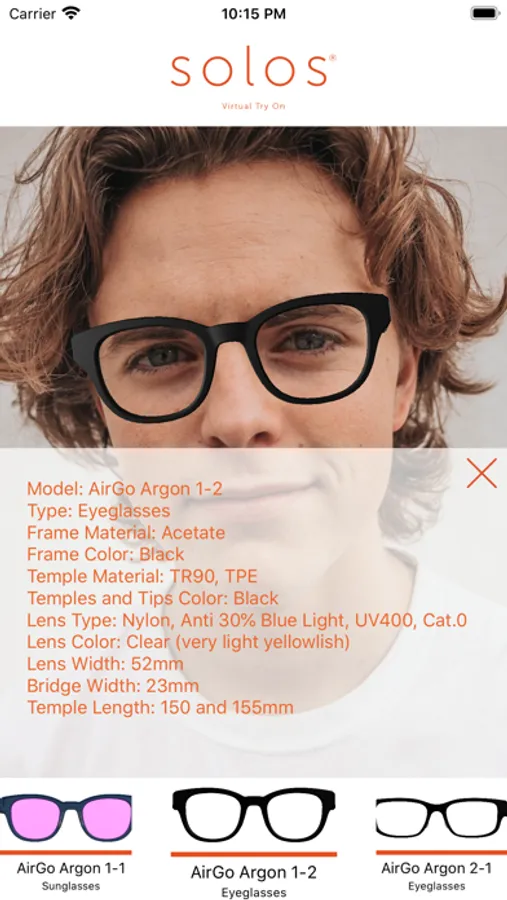 Solos VTO is a free online platform for virtually trying on different styles of eyeglasses owned by Solos Technology Limited, an expertise in innovating smart eyewear. Equipped with front and back cameras, you can choose your own glasses or help your friends to choose one. Show your favourite glasses to your friends to get comments by our “Share It” icon before you determine to buy it. Come to download Solos VTO and have fun.
