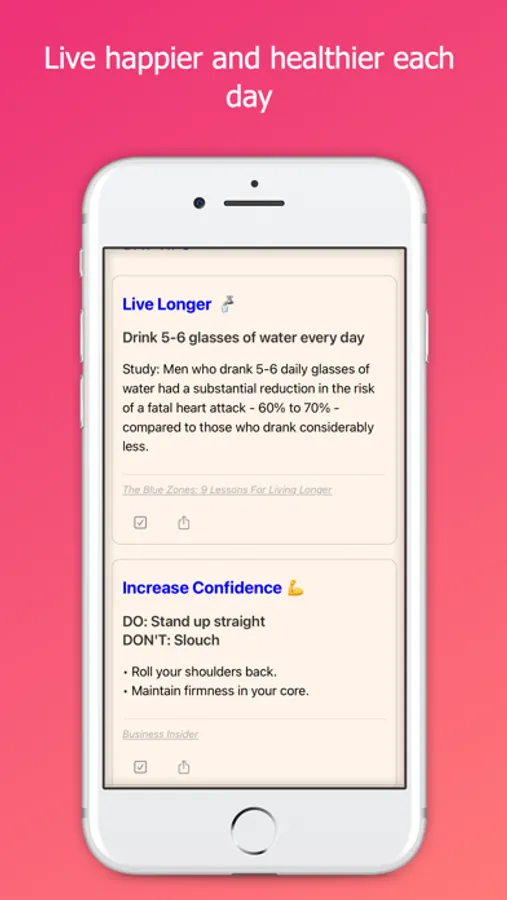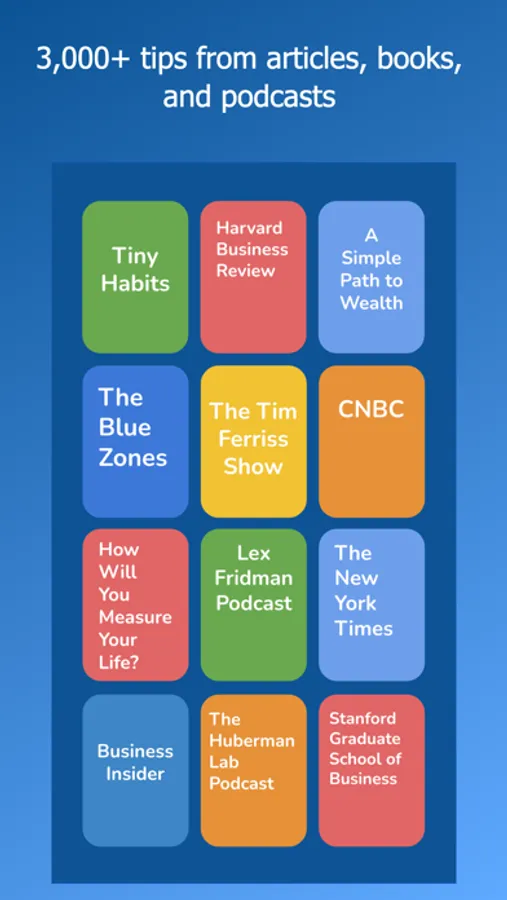 Rize displays tips to help you to make smarter decisions now. 3,000+ tips from the best articles, books, and podcasts. 50+ categories.