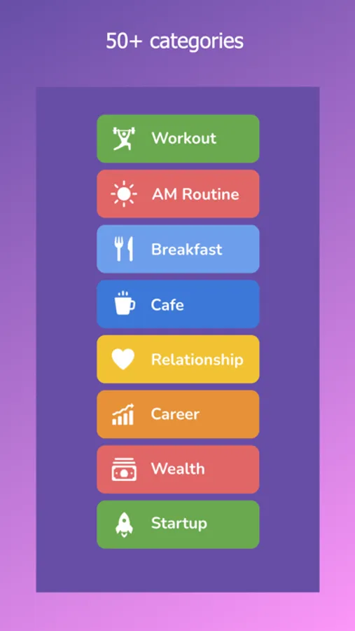 Categories include: health, money, career, school, relationships, parenting, fitness, personal development, and more!