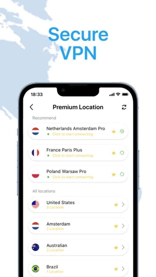 The primary target of our VPN application is securing our users' Internet information and hiding their public IP. Through the newest encrypt protocol,we could guarantee the safety of users' Internet tracks。