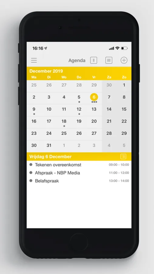 Een agendafunctie toont alle gemaakte afspraken waarvan uit direct de juiste verkoopkans en/of de overeenkomst kan worden bekeken. Op de verkoopkans worden alle relevante gegevens getoond en zijn alle overeenkomsten zichtbaar. Zo heeft de account manager inzicht in alle bestaande afspraken, kan een bestaande overeenkomst meteen worden aangepast en is er inzicht in alle gekoppelde documenten en verzoeken. Naast het inzien van verkoopkansen en overeenkomsten is het ook mogelijk meteen afspraak- en taakverzoeken aan te maken.