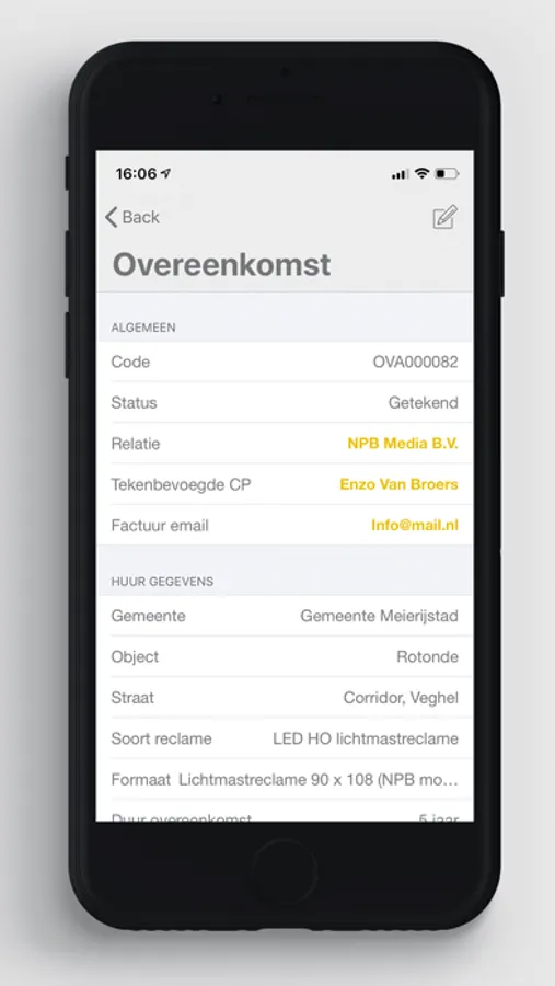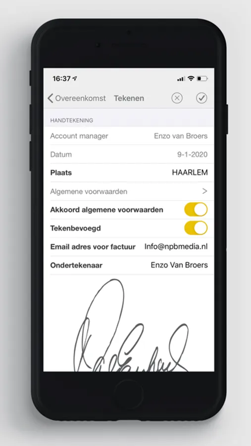 Nieuwe overeenkomsten kunnen realtime worden aangemaakt en kunnen in de app, door de klant meteen getekend worden.