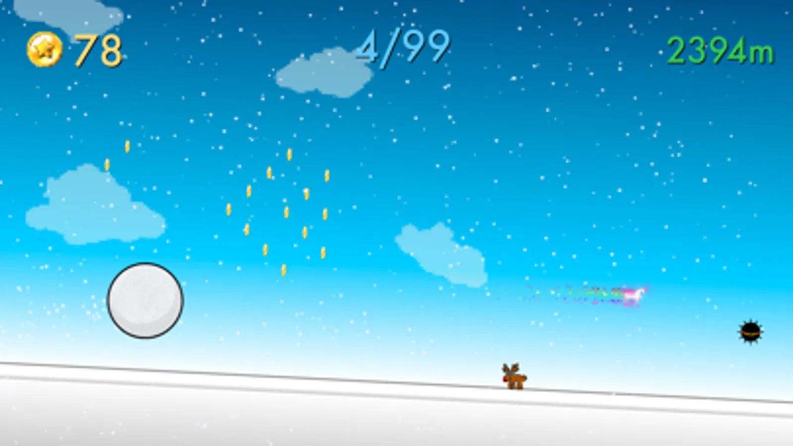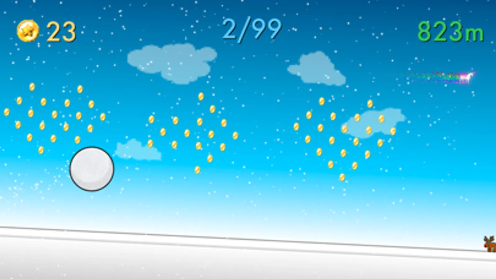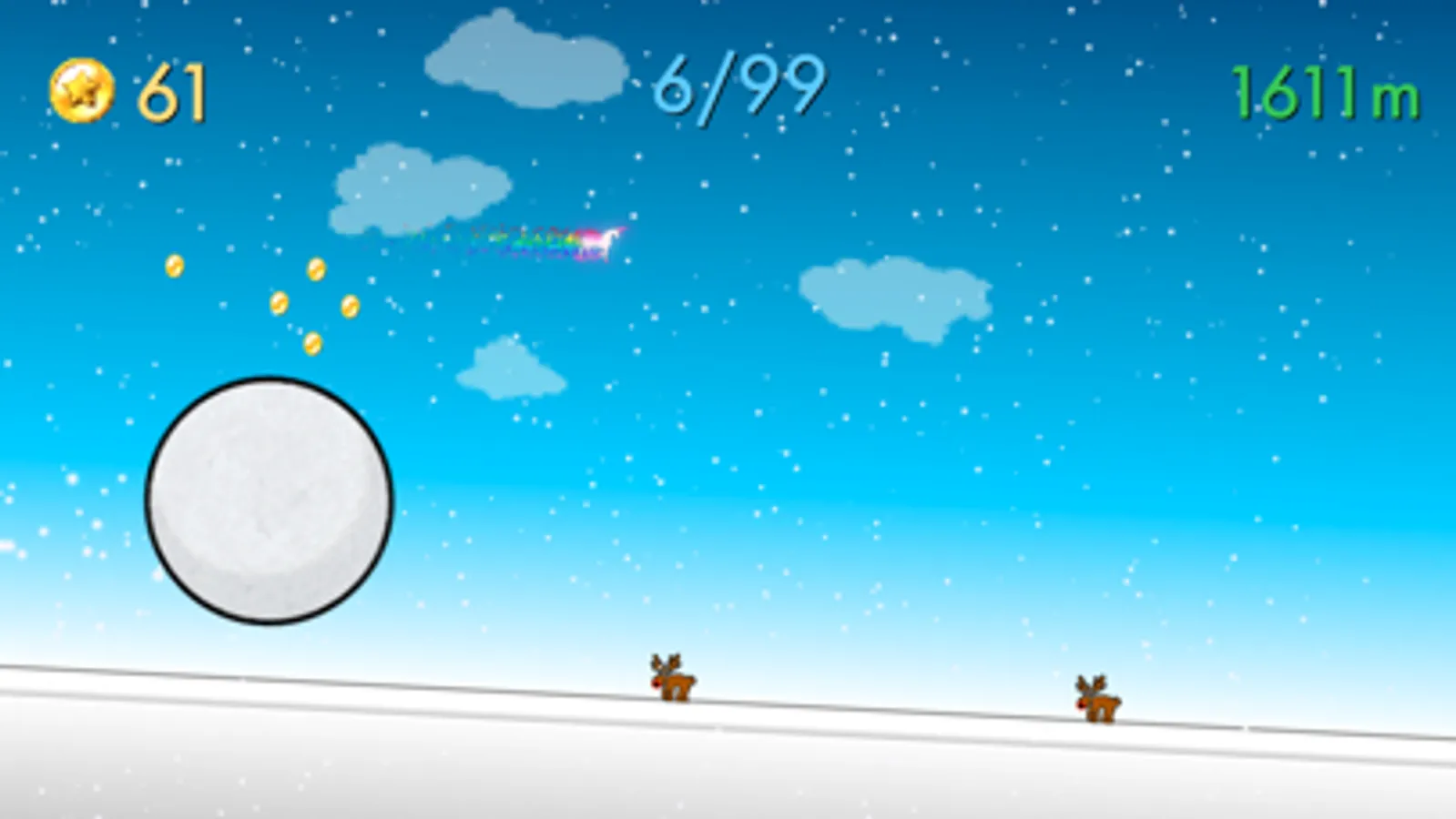 Get new snowballs, find unicorn and show everyone how far you can roll.