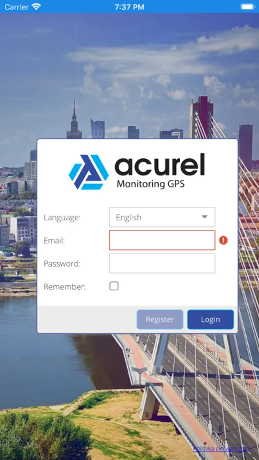 Do działania aplikacji wymagany jest lokalizator GPS marki Acurel oraz konto otrzymane po zakupie.
