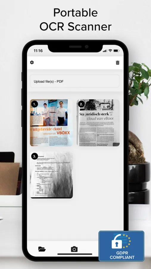 Use your vBoxxCloud login details to start using the vBoxxScan app for free. vBoxxCloud uses exclusive OCR render servers that recognize characters and numbers on the photos you took with your smartphone converting them into searchable text.