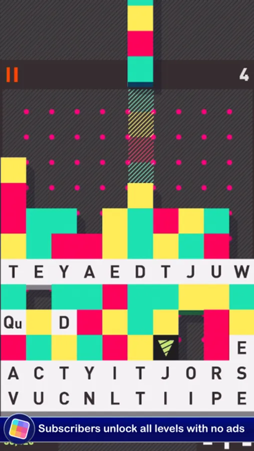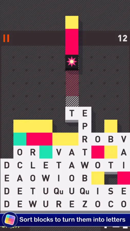 Match the Colors: Line up at least three blocks of the same color and give them a tap to change them into a mix of letters. The bigger the match, the more letters you'll have to work with!