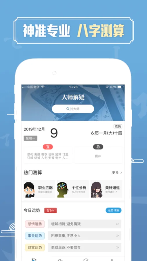 预测类:婚恋、八字合婚、事业、财运、运势、健康、学业等运势预测。