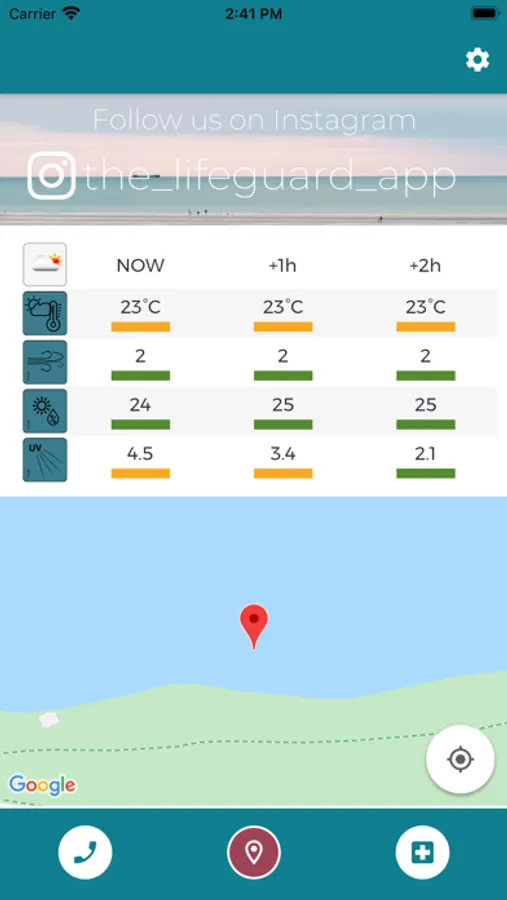 Furthermore the App shows the present GPS coordinates of the user. By that the degree of latitude & longitude can be told to the local lifeguard.