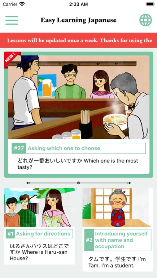 "Easy Learning Japanese" is a learning app that features fun skits that form an extended story. Listeners can learn handy and easy-to-use phrases for self-introductions, shopping, and many other situations. The app is also rich with tourist information as well as insights into Japanese culture and manners.