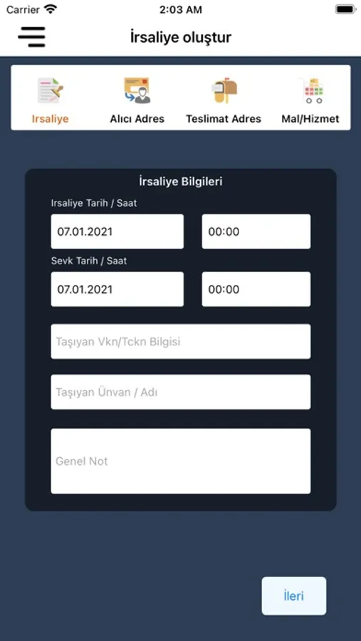 • Yeni irsaliye oluşturma, gelen irsaliyeler için kabul işlemleri yapma kolaylığı sağlar.