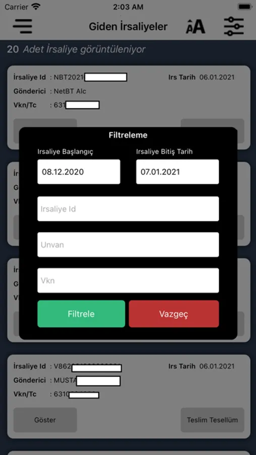 • Tüm irsaliyelerin raporlanması ve görüntülenmesini sağlar.