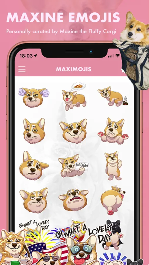 MAXIMOJIS is the #1 Corgi Emoji Dog App thanks to Maxine turned into a an adorable pet emoji.