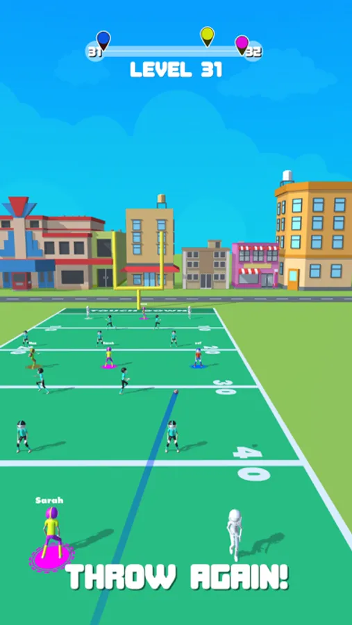 Throw to Pass the ball to your team-mate to reach the Touch Down before others. Take risks with longer passes of getting intercepted!